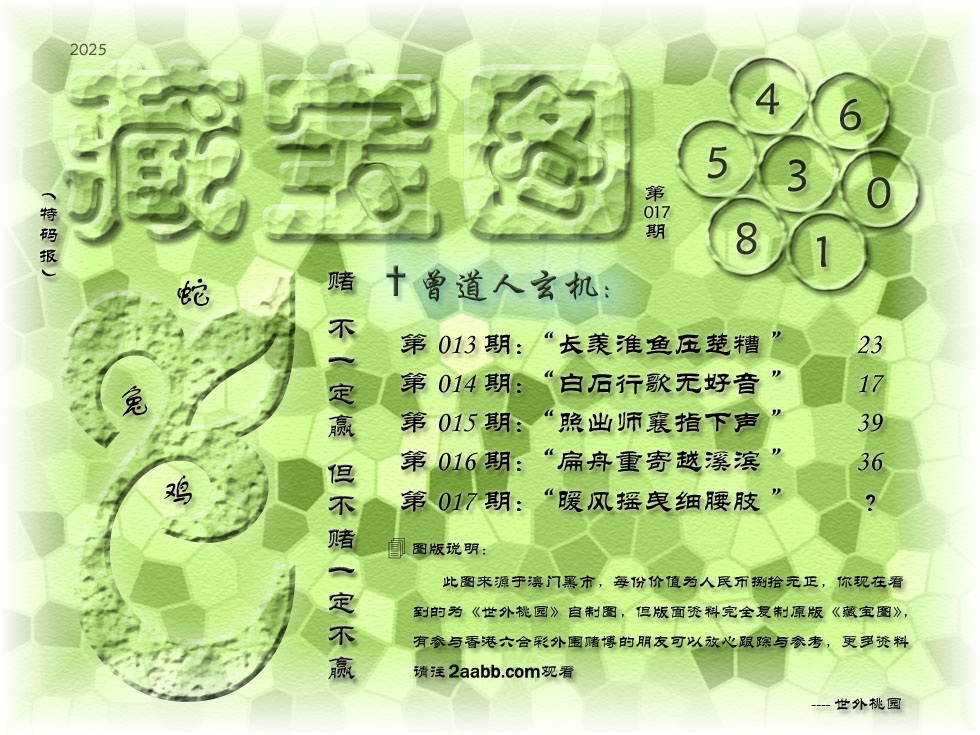 新藏宝图解释:叁解三岁兔第三位虎。拾解十岁猴第十位